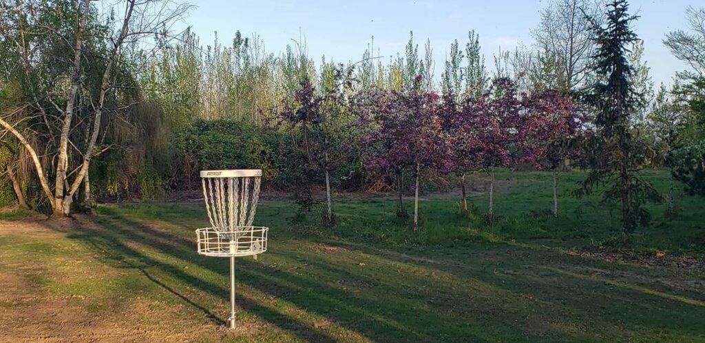 That led to pivot number two: If we can’t do weddings, I thought – let’s do disc golf! We built a Facebook page and created a private group. Rob finished his preparations, and soon he introduced a professional 9-basket disc golf course! He invited a few disc golf buddies over. They played the course, and loved it.