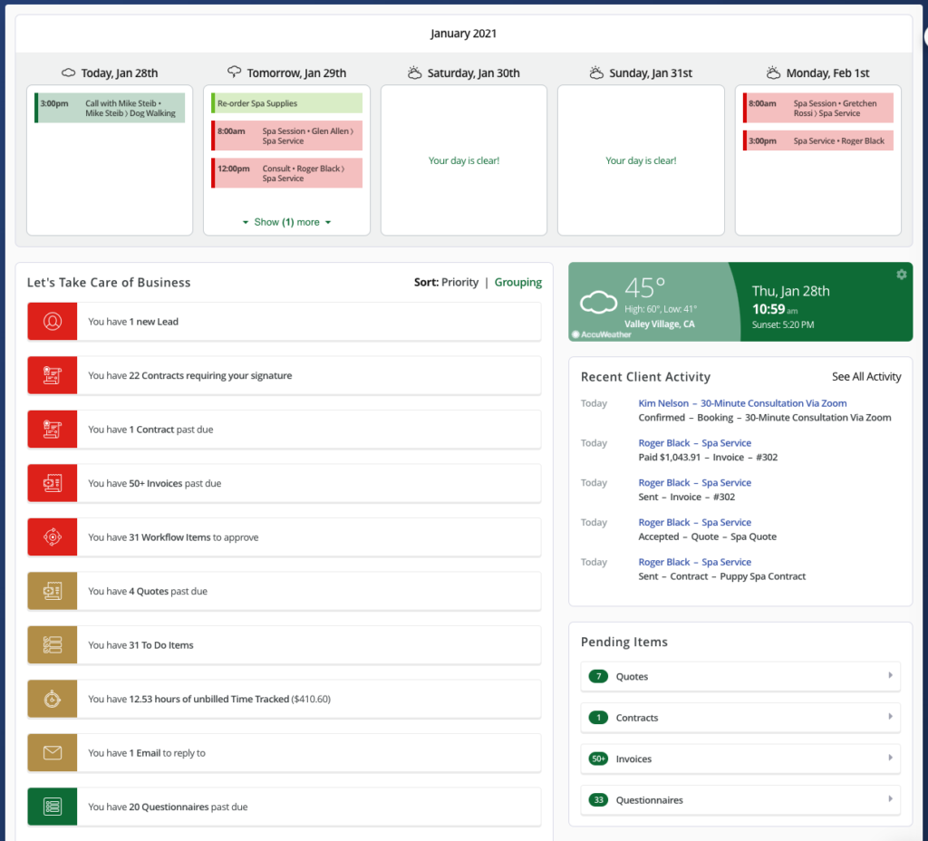 - Recent Client Activity – telling me what tasks my clients have completed