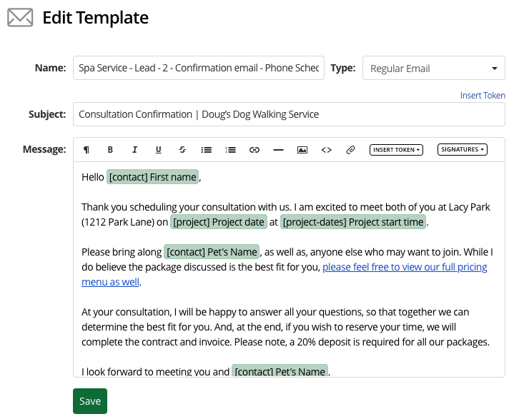 What is the information you need to reference for every client? Imagine being able to insert a pet’s name or a birthday – or a website? All automatically. You’ll be able to send emails that are totally customized to your clients. The level of service you deliver just skyrocketed!